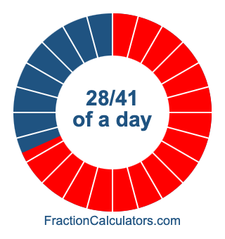 Here we will show you how to calculate exactly how many hours, minutes, and seconds there are in 28/41 of a day. We will also illustrate what 28/41 of a day looks like on a pie chart.