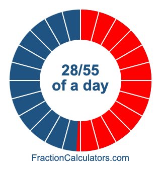 Here we will show you how to calculate exactly how many hours, minutes, and seconds there are in 28/55 of a day. We will also illustrate what 28/55 of a day looks like on a pie chart.