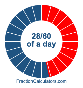 Here we will show you how to calculate exactly how many hours, minutes, and seconds there are in 28/60 of a day. We will also illustrate what 28/60 of a day looks like on a pie chart.