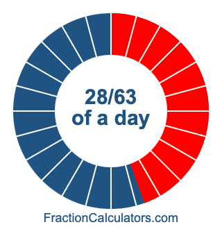 Here we will show you how to calculate exactly how many hours, minutes, and seconds there are in 28/63 of a day. We will also illustrate what 28/63 of a day looks like on a pie chart.