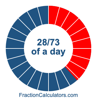 Here we will show you how to calculate exactly how many hours, minutes, and seconds there are in 28/73 of a day. We will also illustrate what 28/73 of a day looks like on a pie chart.
