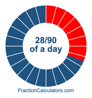 Here we will show you how to calculate exactly how many hours, minutes, and seconds there are in 28/90 of a day. We will also illustrate what 28/90 of a day looks like on a pie chart.