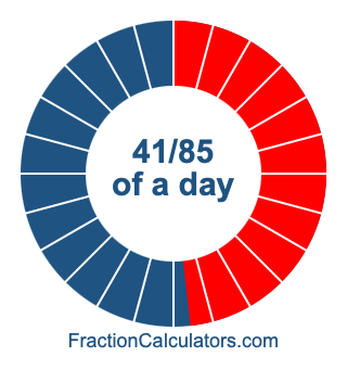 Here we will show you how to calculate exactly how many hours, minutes, and seconds there are in 41/85 of a day. We will also illustrate what 41/85 of a day looks like on a pie chart.