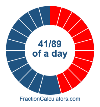 Here we will show you how to calculate exactly how many hours, minutes, and seconds there are in 41/89 of a day. We will also illustrate what 41/89 of a day looks like on a pie chart.