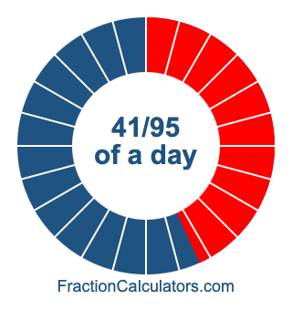Here we will show you how to calculate exactly how many hours, minutes, and seconds there are in 41/95 of a day. We will also illustrate what 41/95 of a day looks like on a pie chart.