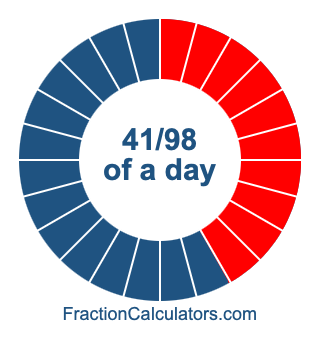 Here we will show you how to calculate exactly how many hours, minutes, and seconds there are in 41/98 of a day. We will also illustrate what 41/98 of a day looks like on a pie chart.