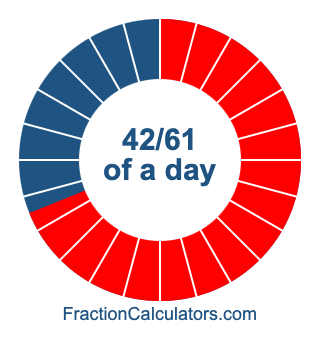 Here we will show you how to calculate exactly how many hours, minutes, and seconds there are in 42/61 of a day. We will also illustrate what 42/61 of a day looks like on a pie chart.