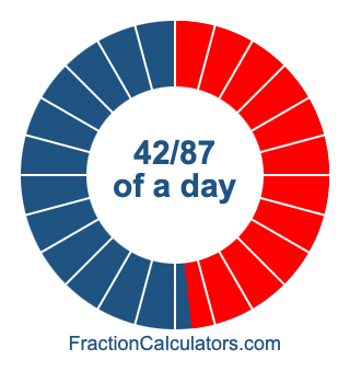 Here we will show you how to calculate exactly how many hours, minutes, and seconds there are in 42/87 of a day. We will also illustrate what 42/87 of a day looks like on a pie chart.