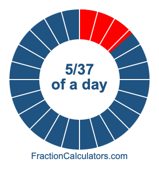 Here we will show you how to calculate exactly how many hours, minutes, and seconds there are in 5/37 of a day. We will also illustrate what 5/37 of a day looks like on a pie chart.