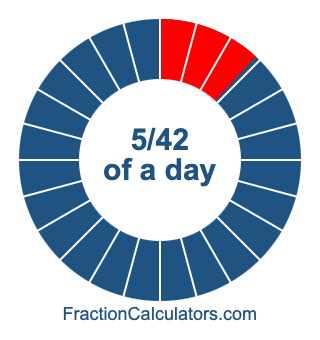 Here we will show you how to calculate exactly how many hours, minutes, and seconds there are in 5/42 of a day. We will also illustrate what 5/42 of a day looks like on a pie chart.