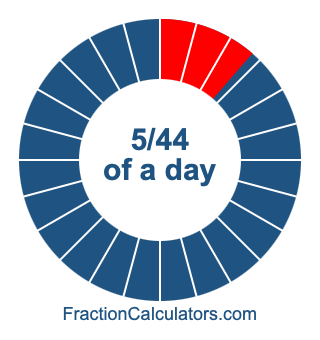 Here we will show you how to calculate exactly how many hours, minutes, and seconds there are in 5/44 of a day. We will also illustrate what 5/44 of a day looks like on a pie chart.