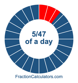 Here we will show you how to calculate exactly how many hours, minutes, and seconds there are in 5/47 of a day. We will also illustrate what 5/47 of a day looks like on a pie chart.