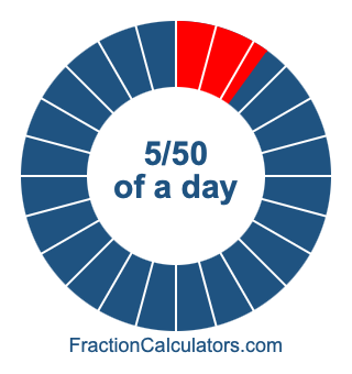 Here we will show you how to calculate exactly how many hours, minutes, and seconds there are in 5/50 of a day. We will also illustrate what 5/50 of a day looks like on a pie chart.