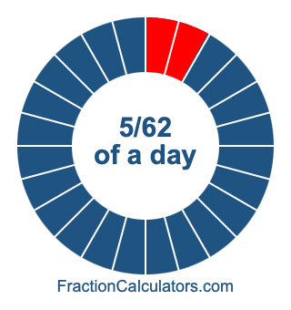Here we will show you how to calculate exactly how many hours, minutes, and seconds there are in 5/62 of a day. We will also illustrate what 5/62 of a day looks like on a pie chart.