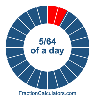 Here we will show you how to calculate exactly how many hours, minutes, and seconds there are in 5/64 of a day. We will also illustrate what 5/64 of a day looks like on a pie chart.