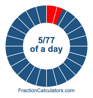 Here we will show you how to calculate exactly how many hours, minutes, and seconds there are in 5/77 of a day. We will also illustrate what 5/77 of a day looks like on a pie chart.