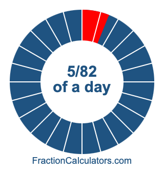 Here we will show you how to calculate exactly how many hours, minutes, and seconds there are in 5/82 of a day. We will also illustrate what 5/82 of a day looks like on a pie chart.