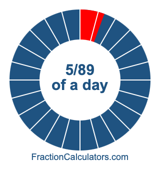 Here we will show you how to calculate exactly how many hours, minutes, and seconds there are in 5/89 of a day. We will also illustrate what 5/89 of a day looks like on a pie chart.