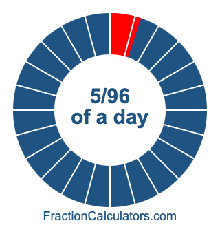 Here we will show you how to calculate exactly how many hours, minutes, and seconds there are in 5/96 of a day. We will also illustrate what 5/96 of a day looks like on a pie chart.