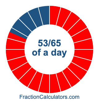 Here we will show you how to calculate exactly how many hours, minutes, and seconds there are in 53/65 of a day. We will also illustrate what 53/65 of a day looks like on a pie chart.