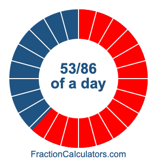 Here we will show you how to calculate exactly how many hours, minutes, and seconds there are in 53/86 of a day. We will also illustrate what 53/86 of a day looks like on a pie chart.