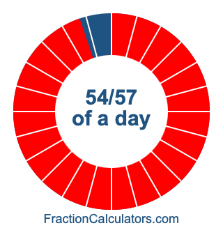 Here we will show you how to calculate exactly how many hours, minutes, and seconds there are in 54/57 of a day. We will also illustrate what 54/57 of a day looks like on a pie chart.