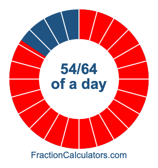 Here we will show you how to calculate exactly how many hours, minutes, and seconds there are in 54/64 of a day. We will also illustrate what 54/64 of a day looks like on a pie chart.