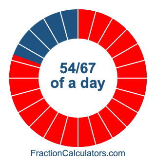 Here we will show you how to calculate exactly how many hours, minutes, and seconds there are in 54/67 of a day. We will also illustrate what 54/67 of a day looks like on a pie chart.