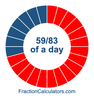 Here we will show you how to calculate exactly how many hours, minutes, and seconds there are in 59/83 of a day. We will also illustrate what 59/83 of a day looks like on a pie chart.