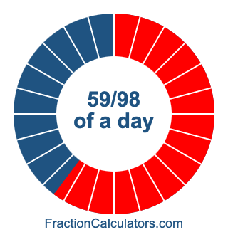Here we will show you how to calculate exactly how many hours, minutes, and seconds there are in 59/98 of a day. We will also illustrate what 59/98 of a day looks like on a pie chart.