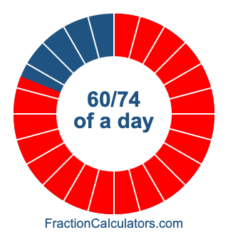 Here we will show you how to calculate exactly how many hours, minutes, and seconds there are in 60/74 of a day. We will also illustrate what 60/74 of a day looks like on a pie chart.