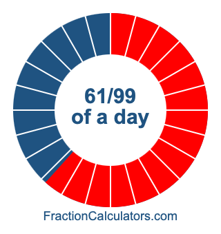 Here we will show you how to calculate exactly how many hours, minutes, and seconds there are in 61/99 of a day. We will also illustrate what 61/99 of a day looks like on a pie chart.