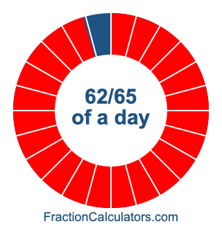 Here we will show you how to calculate exactly how many hours, minutes, and seconds there are in 62/65 of a day. We will also illustrate what 62/65 of a day looks like on a pie chart.