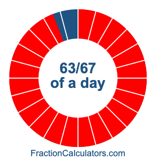 Here we will show you how to calculate exactly how many hours, minutes, and seconds there are in 63/67 of a day. We will also illustrate what 63/67 of a day looks like on a pie chart.