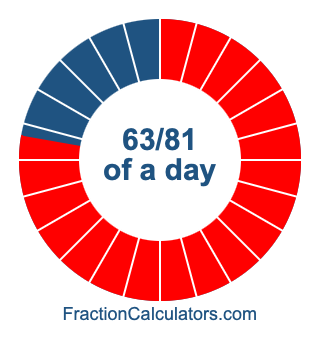 Here we will show you how to calculate exactly how many hours, minutes, and seconds there are in 63/81 of a day. We will also illustrate what 63/81 of a day looks like on a pie chart.