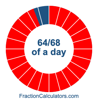 Here we will show you how to calculate exactly how many hours, minutes, and seconds there are in 64/68 of a day. We will also illustrate what 64/68 of a day looks like on a pie chart.