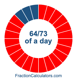 Here we will show you how to calculate exactly how many hours, minutes, and seconds there are in 64/73 of a day. We will also illustrate what 64/73 of a day looks like on a pie chart.