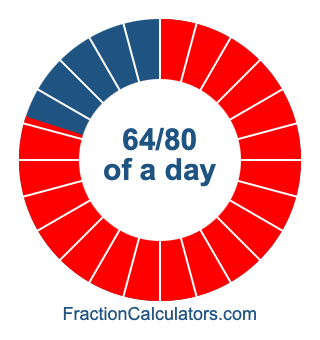 Here we will show you how to calculate exactly how many hours, minutes, and seconds there are in 64/80 of a day. We will also illustrate what 64/80 of a day looks like on a pie chart.