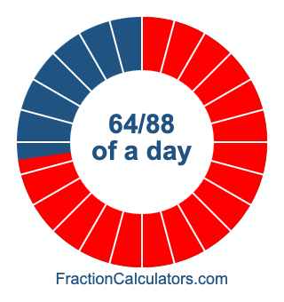 Here we will show you how to calculate exactly how many hours, minutes, and seconds there are in 64/88 of a day. We will also illustrate what 64/88 of a day looks like on a pie chart.