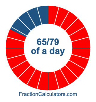 Here we will show you how to calculate exactly how many hours, minutes, and seconds there are in 65/79 of a day. We will also illustrate what 65/79 of a day looks like on a pie chart.