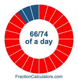 Here we will show you how to calculate exactly how many hours, minutes, and seconds there are in 66/74 of a day. We will also illustrate what 66/74 of a day looks like on a pie chart.