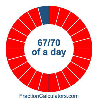 Here we will show you how to calculate exactly how many hours, minutes, and seconds there are in 67/70 of a day. We will also illustrate what 67/70 of a day looks like on a pie chart.