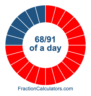 Here we will show you how to calculate exactly how many hours, minutes, and seconds there are in 68/91 of a day. We will also illustrate what 68/91 of a day looks like on a pie chart.