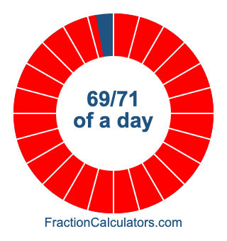 Here we will show you how to calculate exactly how many hours, minutes, and seconds there are in 69/71 of a day. We will also illustrate what 69/71 of a day looks like on a pie chart.