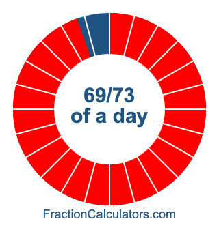 Here we will show you how to calculate exactly how many hours, minutes, and seconds there are in 69/73 of a day. We will also illustrate what 69/73 of a day looks like on a pie chart.
