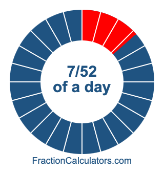 Here we will show you how to calculate exactly how many hours, minutes, and seconds there are in 7/52 of a day. We will also illustrate what 7/52 of a day looks like on a pie chart.
