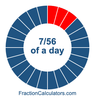 Here we will show you how to calculate exactly how many hours, minutes, and seconds there are in 7/56 of a day. We will also illustrate what 7/56 of a day looks like on a pie chart.
