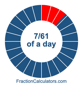 Here we will show you how to calculate exactly how many hours, minutes, and seconds there are in 7/61 of a day. We will also illustrate what 7/61 of a day looks like on a pie chart.