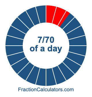Here we will show you how to calculate exactly how many hours, minutes, and seconds there are in 7/70 of a day. We will also illustrate what 7/70 of a day looks like on a pie chart.