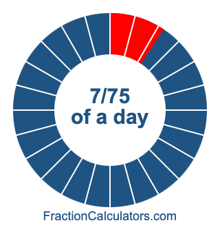 Here we will show you how to calculate exactly how many hours, minutes, and seconds there are in 7/75 of a day. We will also illustrate what 7/75 of a day looks like on a pie chart.